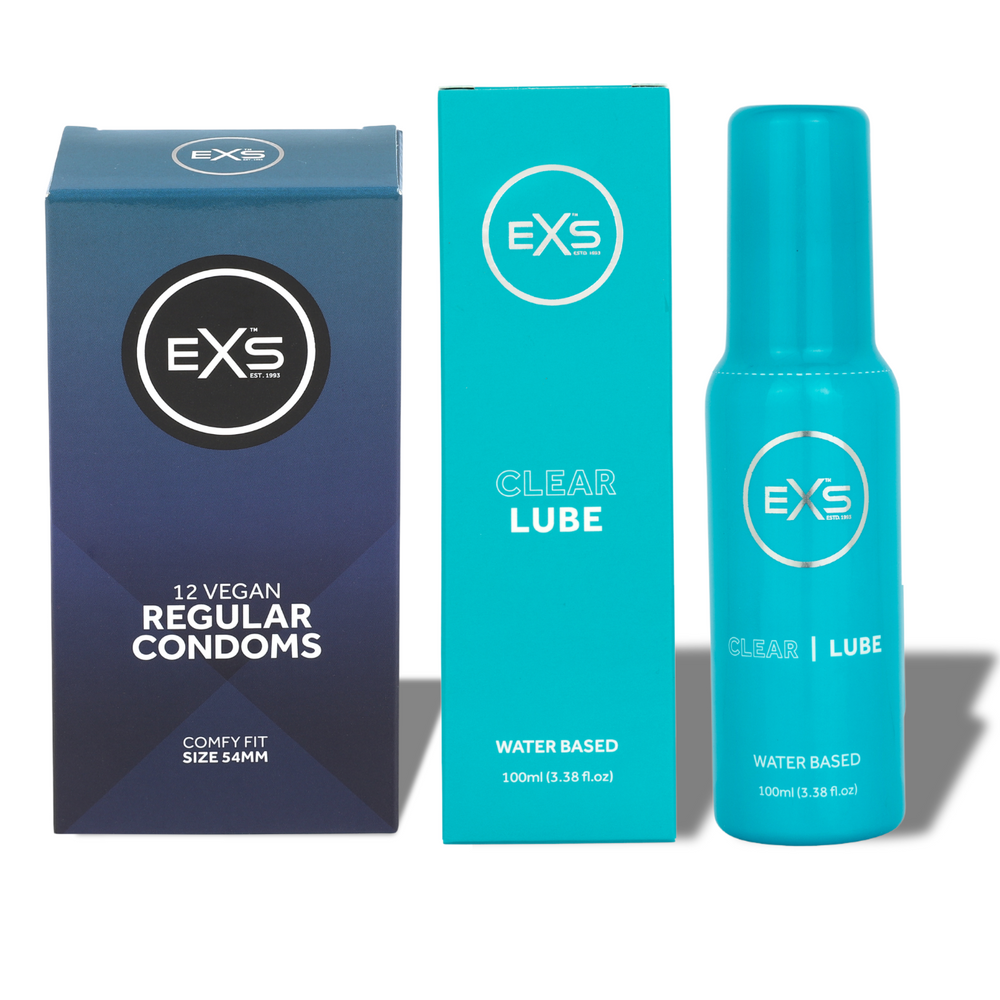 The EXS Classic Bundle brings you the timeless duo of 12 EXS Regular Condoms and EXS Clear Lubricant. A must-have combination for anyone. Perfectly paired for safety, comfort, and smooth intimacy, this bundle delivers a reliable, natural feel, making it an ideal choice for all kinds of connections.