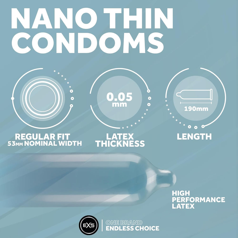 Experience intimacy like never before with EXS Nano Thin Condoms, where thinness meets uncompromising protection for an unforgettable encounter.